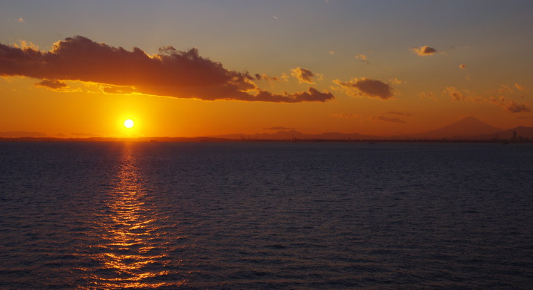 午前中乳がん検診に行って戻ってきたカミサンが夜になってか熱が出て、喉の痛みと咳で、風呂にも入らず20時には寝てしまいました。翌朝かかりつけの医者に診てもらったらA型インフルエンザだそうで、タミフルほかいろんな薬を貰って金曜日は全ての予定をキャンセルして寝ています。前の日はなんともなかったので、がん検診に行った病院で感染したとしか考えられません。私が昔インフルに罹ったのは、会社の診療所で人間ドックを受けた後でした。インフルの流行っている時期はいつ何処で感染するかわかりません。マスクと手洗い、うがいが大切です。海ほたるの日没