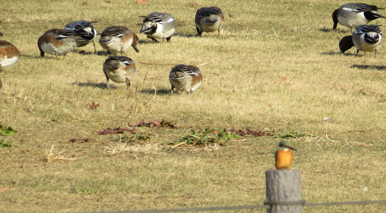相変わらず乾燥した冬空が続いています。毎日の予定をこなすのが精一杯でなかなか年賀状に取り掛かれません。ハガキの裏のデザインは毎年、本屋さんからDVD付きのデザイン集を買ってきて気に入った絵を選んでます。ハガキがあってデザイン集もあるのに時間だけがありません。あと気持ちの切り替えも必要です。取り掛かれるのは年末ギリギリになりそうです。あれもこれもしなければいけないのに気持ちだけが焦るので気分転換に中央公園まで散歩に出かけました。池の周りを歩いているときに、水面に一直線に飛び込んですぐ飛び去った小さな鳥のシルエットはカワセミ。眼で追いかけたら30mくらい先の柱の突端にとまりました。幸い50倍ズームのコンデジ持っていたので撮ってみました。背景にピントがあってしまいましたがそのイメージだけは捉えることができました。