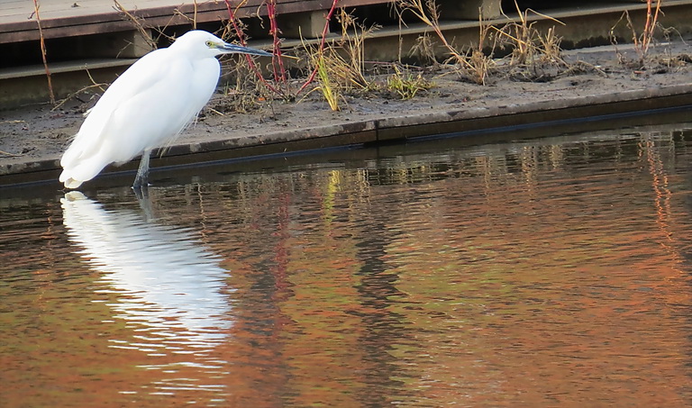 午前中はパラパラでしたが、午後から本降りの雨となりました。風もなく少し寒さが和らぎました。庭のピラカンサの実を鳥が食べにきます。ムクドリ、メジロ、ヒヨドリなど。警戒心が強く人の気配ですぐ逃げてしまいます。カーテンの陰からカメラで撮ろうと思うと鳥には分かるのでしょうか、ぱっと飛び立って近くの電線に避難します。中央公園の池によく来るシラサギも近づくのは10mが限度。望遠レンズが威力を発揮します。写真は約50m手前の手摺にカメラを置いてぶれないようにシャッターを押して辛うじ撮れた写真です。