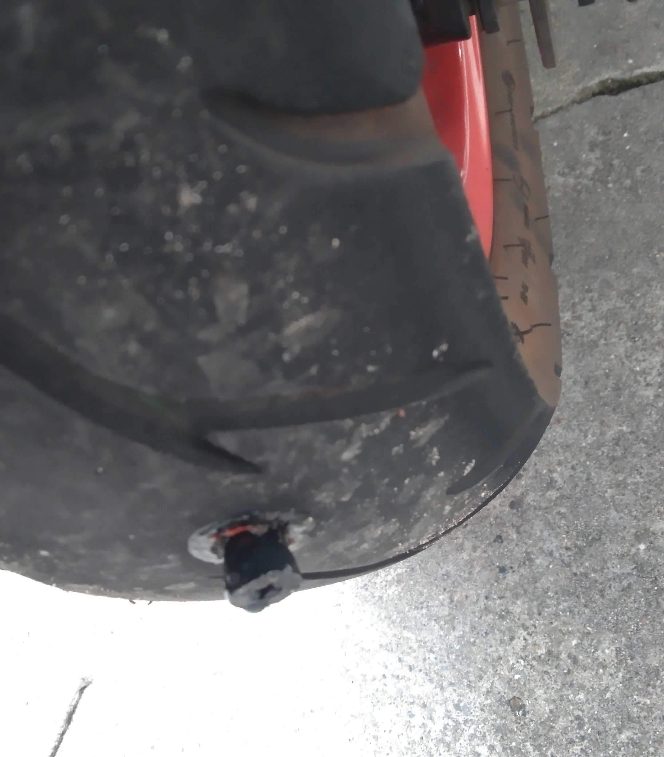 タイヤを触るとベコベコ号泣
