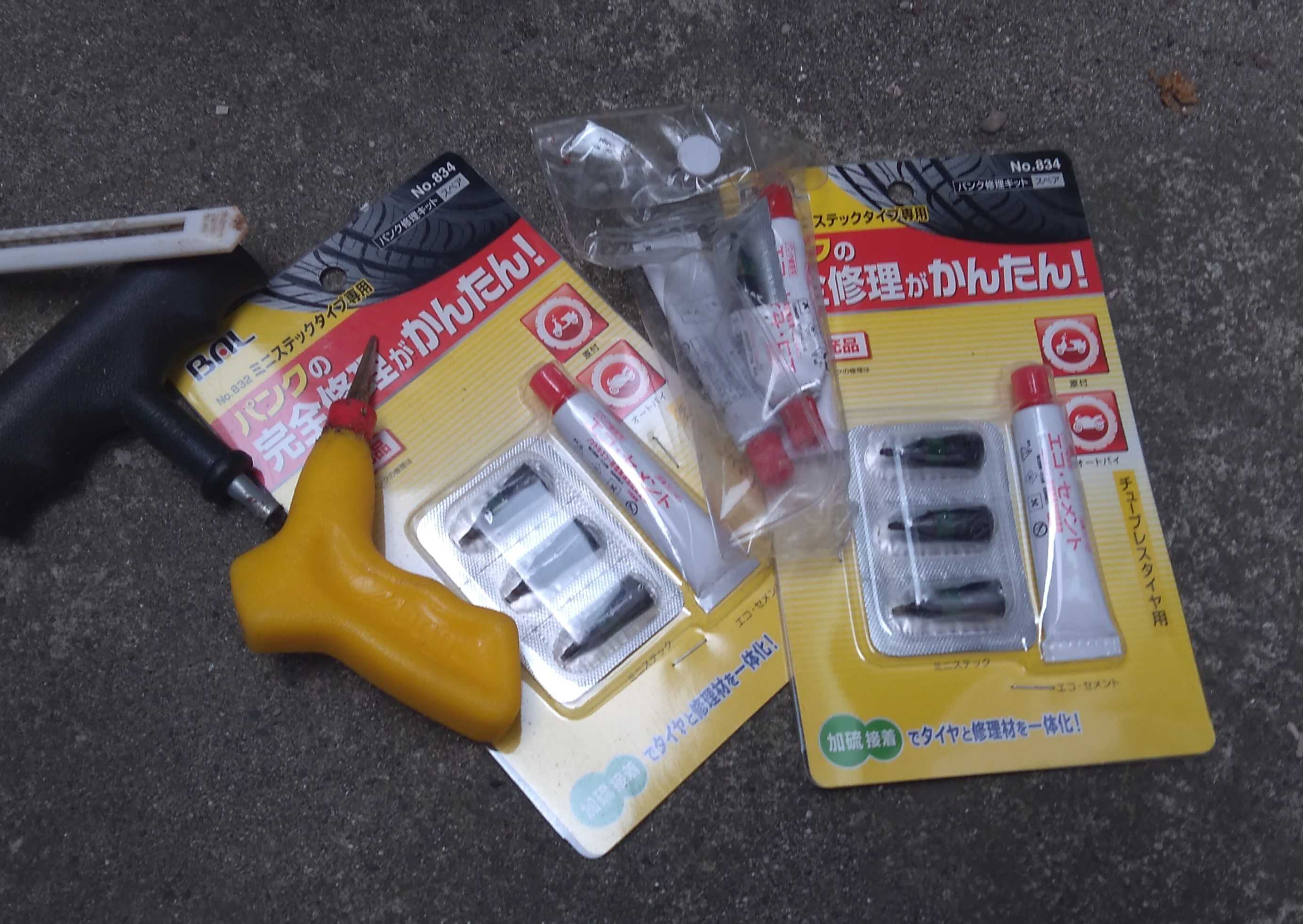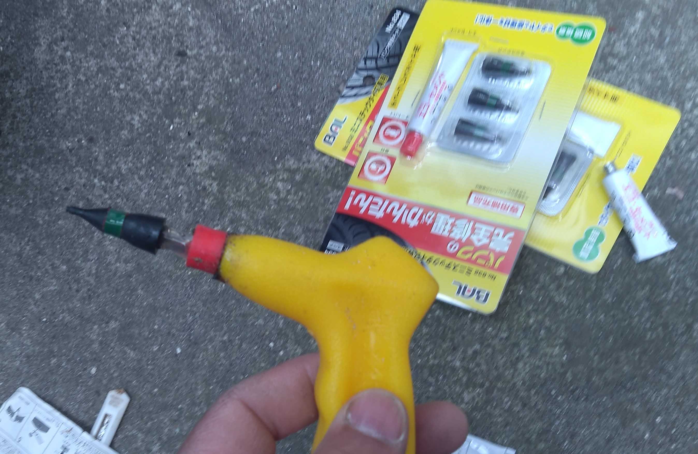 パンク修理セットはすぐ出せるところに常時しているので