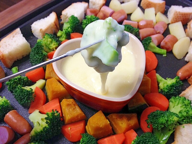 ホットプレート☆絶品チーズフォンデュ料理名:チーズフォンデュ作者: 栗皮茶■材料(4人分)★とろけるチーズ / 1袋(300g)★コーンスターチ / 小2白ワイン / 100mlニンニク / 1片オリーブオイル / 大1~具~ / ブロッコリー / 1房人参 / 1本じゃが芋 / 2個かぼちゃ / 1/8個ソーセージ / 1袋(165g)フランスパン / 1/2本ドリトス(タコス味) / 1袋■レシピを考えた人のコメント【スイス】 ホットプレートで\(^▽^)/チーズソースと具がいつまでも温かい!こんがり焼けたフランスパンもGood!野菜も甘みが増します。是非、ホットプレートで詳細を楽天レシピで見る→