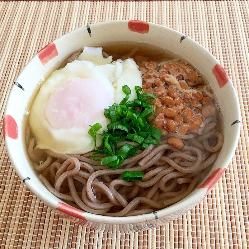 あたたかい月見納豆そば♪料理名:あたたかい月見納豆そば♪作者: ぽよっちぷーちゃん■材料(1人分)そば(乾麺でもゆで麺でも) / 1人前納豆 / 1パック卵 / 1個青ネギ / 1/2本そばつゆ(ストレート) / 300cc■レシピを考えた人のコメント月見そばに納豆をプラスしました!美味しいです(o^^o)♪詳細を楽天レシピで見る→