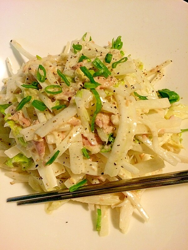 大根と白菜のツナサラダ料理名:ツナサラダ作者: きのこのみみ■材料(2〜3人分)大根 / 5センチ白菜 / 3枚塩、黒胡椒 / 各少々ツナ缶 / 小1缶マヨネーズ / 大さじ2〜■レシピを考えた人のコメントあっさり野菜とツナを合わせました。パクパクいけます^^;詳細を楽天レシピで見る→