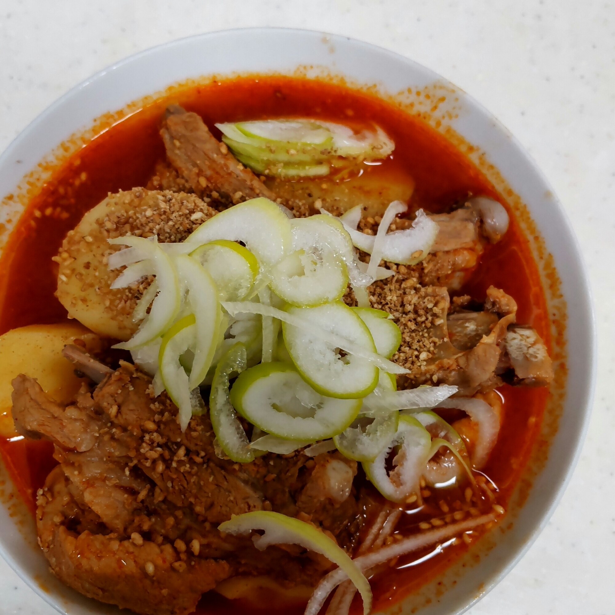 一人で楽しむカムジャタンとスンドゥブチゲ作者: chiechお京■材料(1人分)豚スベアリブ(骨付き豚アバラ肉) / 3本(250〜350g)ジャガイモ / 中1個(約100g)ダシダ / 10g水 / 700ccコチュジャン / 大さじ2砂糖 / 大さじ3分の2酒 / 大さじ1みりん / 大さじ3分の2ごま油 / 大さじ3分の2韓国唐辛子 / 大さじ1〜2(好みに応じて)長ネギ(青ネギ) / 5センチ位(青ネギなら1本)すりゴマ / 大さじ1*スンドゥブチゲ用豚小間切れ肉 / 30から50g*野菜(白菜、人参、生椎茸、ネギ等) / 約100g*豆腐 / 150g*卵 / 1個*コチュジャン / 大さじ1■レシピを考えた人のコメント韓国のピリ辛料理の一つ、骨付き豚肉とジャガイモの鍋料理です。スープを多い目に作り翌日豆腐や豚肉野菜などを入れてスンドゥブチゲとして楽しみます。詳細を楽天レシピで見る→