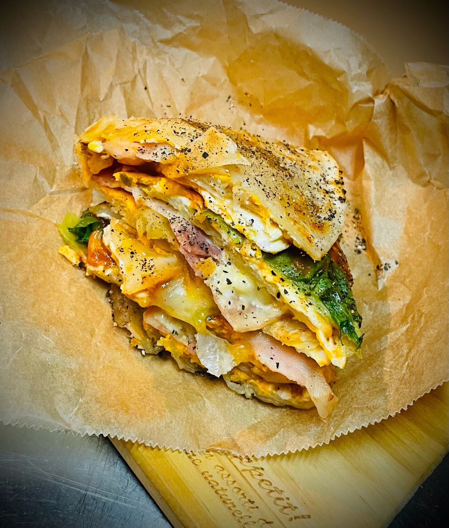 業スーのパラタで♪ワンパン折りたたみサンドイッチ作者: 89353652nao■材料(1人分)冷凍パラタ / 1枚玉子 / 1個《具材、ソースはお好みで》 / レタス / 1枚ベーコン(加熱済) / 2枚チーズシュレッド / ひとつまみケチャップ / 大さじ1マヨネーズ / 大さじ1《仕上げ》 / ブラックペッパー / ひとふり■レシピを考えた人のコメントインスタでたまに見る海外のフライパンで折りたたんで作るサンドイッチを作ってみたくて♪自分的まかない飯で作るつもりが1人分にはちとボリュームがすごいかもですが。詳細を楽天レシピで見る→