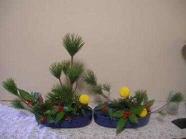 午前中は、親先生のところでお正月花のお稽古。午後は虹クラスのお正月花のお稽古でした。先生のところでは、1月の研究会が琳派調ということもあり、琳派の花材を注文しておきました。小松が混ざっている花材です。今年は喪中なので、松はどうかな?ともおもったのですが、松が混ざっている琳派はこの時期しかお稽古出来るチャンスがないので、私は経験不足で皆さんに追いつくまではたくさんのお稽古をしないとという気持ちもあり、この花材にしました。虹クラスのお稽古で皆さんの前で生けたのですが、持って帰る時、右側に入れたポンポン菊の長い方を折ってしまいました(><それで、菊が一つとっても短くなって生けています。1本買おうかな?と思ったけど、でも短い花でお稽古して見ようと思って、こんな感じで仕上げました。先生のところのお稽古と少し変わった雰囲気になりました。 虹クラスのお稽古は2種類の花材になりました。若松 菊二種 千両でならぶかたち 同じ花材ですが、菊の入れ方で雰囲気が違います。どちらもバランス良く綺麗に入っています。 小松 デンファレ かすみ草 千両でたてるかたち 千両は元々は入っていなかったのですが、私が少し余分にお花屋さんに頼んだ千両をお分けして入れていただきました。やっぱり赤が入った方が綺麗です。デンファレは緑の葉も無いから緑が入った方が締まるみたいです。こちらは少し洋風な雰囲気もあって華やかになりました。デンファレのマッスの生け方を教えて差し上げました。花器はおばあちゃまが集会所に置きっぱなしにしていたものを見つけてお二人には貸出しました。この花にはエンゼル花器より半円花器の黒が合っているように思います。今日の虹クラスのお稽古は私も指導しながら勉強になりました。指導者になると生徒さんのお花も自分のお稽古と同じと言われたことがありますが、いつもお稽古の時それを実感しております。皆さん、華やかに生けられて喜んでいらっしゃいました。 私も今日一日で琳派調、ならぶかたち、洋風なお正月花と3種類のお花がお稽古出来て充実しておりました。