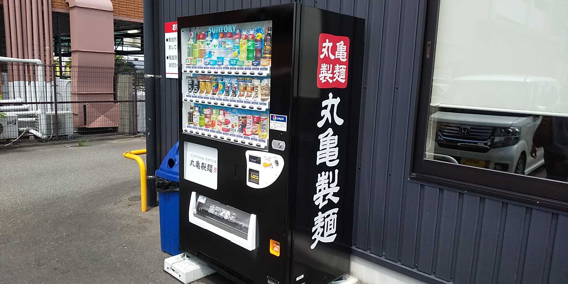 専用の出口からお店を後に…自動販売機まで丸亀仕様なんだと感心しながらも、心はすだちおろしの冷やかけうどんに占領されたまま🍈