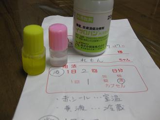更新を休んでいる間、大変な事がありました・・・ 我が家の姫うずらのれもんちゃんは手乗り鳥なので時折かごの外をお散歩させていたのですが・・・ 息子がれもんを踏んでしまいました。 もう病院はあいていない時間で保温するしか手はなく、一晩過ごしました。翌日、鳥に詳しい先生のいる病院に行き診察してもらうと、骨や内臓のほうは無事で命に別状は無いとのことでした。ただ右半身の羽がごっそり抜けケロイドのようになり全治1ヶ月の重症、羽は生えてこないかもしれないというお話でした。でも、生きていてくれて本当に良かった。 小鳥の神様、ありがとうございました。 傷薬、化膿止め、栄養剤です。 ちゃんとお薬を飲んでくれるとても良い子です。 息子にもれもんにも辛い思いをさせました。ごめんね。
