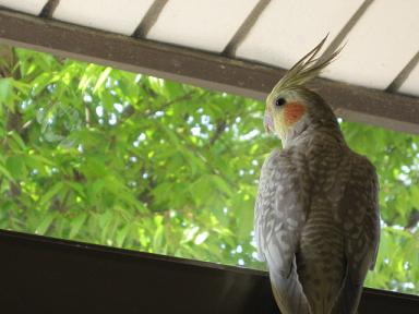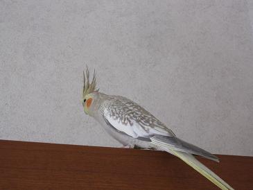 最近、おかめ組はもっぱら床で遊んでいることが多いのですが、るうちゃんが珍しくドアにとまって遊んでいました。なかなか見ることのない角度なので・・・たくさんとっちゃいました最後に一枚、ヘン顔のるうちゃんです。