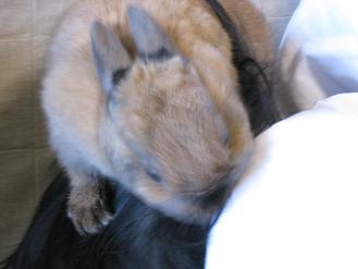 昨夜、ネザーの女の子、ゆずが旅立ちました。 一ヶ月ほど前から体調をくずしていてとうとう逝ってしまいました。 もともと体が弱く、病気になってもとの飼い主からボランティアさんの所へ里子に出されたうさぎで本当の年も判りません。 それでも随分早く逝ってしまったと思います。 家に来て3年と2ヶ月、病院通いも頑張りとても良い子した。 お父さんの横で寝そべってテレビを見るのが大好きだったゆずちゃん。 うちに来て少しは幸せだったのかな? 弱ってからの写真はこれ一枚だけ。 本格的に悪くなり大好きだったお父さんが付き添っていたときの様子です。なんだかお父さんを見守っているように見えます。 雨の中の埋葬は寒いでしょうから晴れるまで一緒にいます。