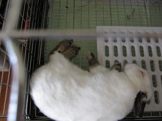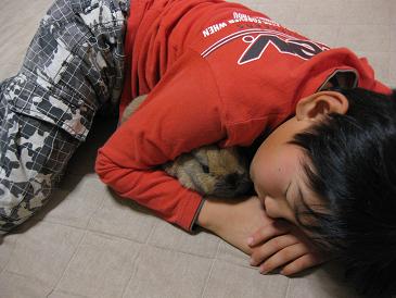 うたた寝する息子にゆずちゃんがちょっかいを出しています。 『ねえねえ、起きてよ』 起きない息子のそばに寄り添うゆずちゃん。 パパはゆずを『お父さんの可愛いうさぎちゃん』などといっていますが若い男の子にはかなわないようですね。
