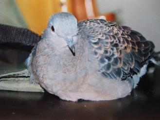 3年まえ、台風の日にキジ鳩の子供を拾いました。まだ黒くて、黄色いヒナ毛がぽわぽわした子でした。 台風の風で巣が落ち、兄弟は残念なことに死んでいました。雨も降り出していたので置いておいても死んでしまうならと連れて帰り、なんとか大人まで育てることができました。 別れないといけなかったので人に慣れさせまいと思い、最小限にしか接しないように心がけていましたが側に来てくつろぐ様子をみると信頼してもらえたようでとても嬉しかったです。写真もこの2枚だけしかありません。結局、自分では放すことができずに夫に頼んで見つけた所のそばに放してもらいました。 でもそれから毎年、この季節になると庭にキジ鳩がやってきます。ひょっとするとあの子かな、きっとそうにちがいないと勝手に思っているのですが・・・ あの子は野の鳥だから一緒にいられませんでしたがずっと一緒にいようね。 ルウルウはあの子とよく似た模様をしています。