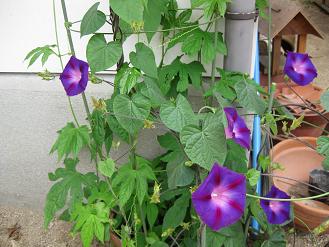 去年、家族で鳥取に遊びに行ったときに採ってきた朝顔が咲き始めました。 ちょっと変わった感じの花だったので種を取ってきたのです。 夕顔のような葉っぱをしています。 きゅうりもぼちぼち成り始めました。 夏が来るなあ~(^^♪