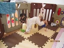 わたくし少々疲れ気味です。娘が、、、、元気すぎ!!おむつ替え、服を着せる時など、本当に苦労します。(未だに良く吐くので着替えが多い)仰向けを嫌がりすぐに寝返りしてしまいます。体重が8キロくらいになったので手に負担がかかり、腱鞘炎が治りません(泣)普段はベビーサークルの中で遊んでいますが、たまに和室に開放してあげます。何もない部屋ですが、ハイハイが上手になって好きなところにホイホイ行きます。タンスをペロペロ、窓をペロペロ、障子をペロペロ、壁をペロペロ。よだれが畳に落ちたのでタオルを取りに行ってる間に網戸をペロペロしていました。もう、ベビーサークルなしでは生活できません。私がベビーサークルの中に入ると、「よじ登るものが来た」とばかりに突進してきます。私の膝などに手を乗っけてつかまり立ち。登りたくて登りたくて。。。そしてメガネを取り、顔を引っ掻き、髪をひっぱります。母と話をしたら、私の娘は良く動くから2人分大変そうだって言ってました。まぁ、大人しいすぎる子でもつまらないでしょうけどね。。。・・がんばりまーす。