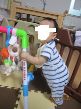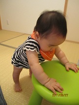 ちょうどよい高さの椅子を置いてつかまり立ちさせてみました。見事キープやるじゃーんと思ったら、あとでベビーサークルの柵でつかまり立ちしました。超ビックリそろそろファーストシューズを買おうかしら?