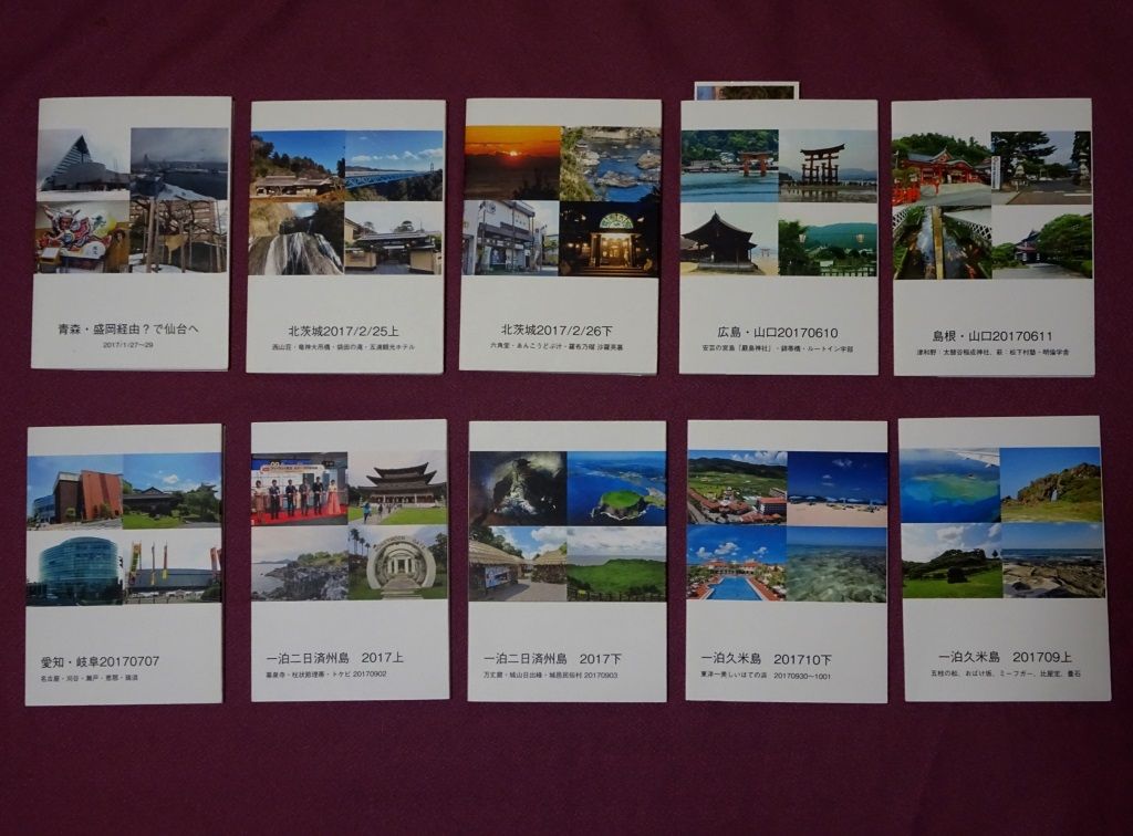 旅を終えて、数ヶ月、やっとフォト・ブックが出来上がりました。旅を終えて直ぐに注文すれば良いのですが、なかなかそうもいきません。早く紙にしたい場合、急ぐ場合、配る場合は、1枚5円の「らっこプリント」へ注文しプリントします。因みに、「しまうま」は1枚6円で、少々高めです。いつも旅の流れに沿ってブログに掲載し、連載?が終わってから、やっとフォト・ブックに取り掛かります。これも1冊198円に抑える為に、1冊35頁内に納めます。最近は、一泊二日の上下巻で198円x2冊のパターンが多くなりました。昔の大きなアルバムに比べ、手軽で保管し易く、持ち運びも容易で助かっています。今年は・・・(1)1月「大納会の伊調馨~ウエスティン宿泊」、(2)1月「青森・盛岡経仙台」、(3)2月「北茨城」、(4)6月「広島・山口・島根」、(5)6月「長野経由仙台」、(6)7月「愛知・岐阜・相撲」、(7)8月「娘孫上京」、(8)9月「韓国・済州島」、(9)9月「久米島」、で9回、14冊が完成です。次は10月の「愛知・岐阜・長野」を作らねばなりません・・・。これで今年の合計は10回、17冊になります。今年もまた良い思い出が追加されました・・・【今日のLifeHack:決して時計を見るな。 これは若い人に覚えてもらいたいことだ。 エジソン】