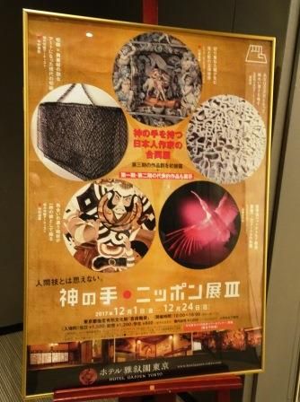 椿山荘の次は、目黒へ移動。今年4月、「目黒雅叙園」から名称を変更した「ホテル雅叙園東京」へ向かいます。愛着のある名前がまた一つ消えた感じではありますが・・。新聞屋さんに貰った「神の手●ニッポン展III」の招待券での鑑賞です。因みに、当日の入場料は¥1,500です。雅叙園の手前にある「お七の井戸」を見ながら先へ進みます。ホテルに入り、直ぐの左手、東京都指定有形文化財「百段階段」の各部屋に飾られています。エレベータで階上へ上りスリッパに履き替えます。このスリッパがいただけない、ホテルで使い古した感じの安物で、椿山荘のものとは全然違います。さて、階段を上り展示会場へ進みます。今回、日本の神の手アーティストが集結!第三期で、第二期と第一期の作品も一緒に展示されているそうです。海外でも高い評価を受ける「シャドーボックス」をはじめ「立体切り文字」「現代切絵アート」などの紙のスペシャリストや、「組み木絵」「ペットボトルアート」など素材に新たな命を吹き込む新たなアーティストを中心に作品約80点が集結、日本人の感性や手先の器用さを堪能できます。立体切り文字アーティスト・笹尾 真さんは、文学作品の名文を切り取り、本来二次元である文字の世界を立体化。芥川龍之介の『地獄変』の冒頭文章を題材とし、数百枚もの紙を重ねた立体文字が生み出す世界を表現しています。一切着色をしていない数十種類の木材を、厚さ5.5mmの板材に揃え、色味や木目の違いを活かしながら絵として組み込んでいく組み木絵アート。展示される中村 道雄さんの作品は、半年以上の時間をかけて素材を探し抜いた作品が多いです。中に入るとご本人が解説され得いて、一緒に記念撮影をお願いしました。(笑)シャドーボックスは、ヨーロッパ各国をはじめ、近年では日本でも芸術として高い評価を受けているハンドクラフト作品。日本におけるシャドーボックスの第一人者、大橋 禾苗さんは、7~8枚の原画を使い、絵を忠実に再現し立体化しています。世の中、天才アーティストがいるもので、感心します・・・。【今日のLifeHack:男との愛は、情緒ではなく幻想だ。 ジラルダン夫人】<ホテル雅叙園東京「神の手・ニッポン展III」><雅叙園、玄関前にある「お七の井戸」><今年4月に変更された名称「ホテル雅叙園東京」><ビーズの織姫・金谷美穂作、ビーズで作った着物><東京都指定有形文化財「百段階段」><「神話のモティーフ」><「立体切り文字」><組み木絵><「ペットボトルアート」>
