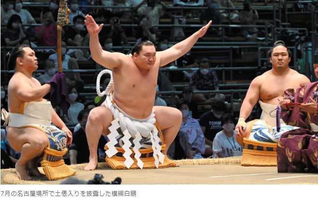 先日、白鵬関が引退するとのニュースが流れました。残念ですが、仕方がありません。お疲れ様でした。彼と話した事も無い誰が何と言おうと、白鵬関は素晴らしい方です。2011年、東日本大震災直後、白鵬関はトラック3~4台をチャーターして支援物資を満載し、原発事故の被害も受けた福島県内の避難所を回っています。相撲協会は横綱の単独行動に否定的でしたが、そうした批判にもかかわらず被災地に赴いています。そして11年9月場所には両国国技館に「白鵬シート」を作り、被災者の人たちを招待しています。そして、今日、「間垣」襲名のニュースが流れました。おめでとうございます。2020年2月3日、白鵬関と共に豆を撒き、ツーショットが実現、更に20分ほど行動を共にしたのを思い出します。先週9月25日に国技館を訪れた時、天井を囲む優勝額は、白鵬関(平成28年春場所)にはじまり、白鵬関(令和3年名古屋場所)に終わっています。・・・・・・・・・・・・・・・・・・・・・・・・・・・・・・・・・・・・・・・・<■横綱白鵬、年寄「間垣」襲名へ 将来は東京・日本橋に部屋創設し独立目指す>9/29(水) 5:00日刊スポーツ日本相撲協会に現役引退を申し出た横綱白鵬(36=宮城野)が、年寄「間垣」を襲名する見通しであることが28日、関係者の話で分かった。今後、年寄資格審査委員会と理事会をへて、引退及び年寄襲名を日本相撲協会が発表。宮城野部屋の部屋付き親方として後進の指導に当たり、将来的には東京・日本橋に部屋を創設して独立を目指す。歴代最多の45度の優勝、歴代最多の通算1187勝など、数々の記録を打ち立てた第一人者。・・・・・・・・・・・・・・・・・・・・・・・・・・・・・・・・・・・・・・・・<■間垣>(まがき) Wiki間垣(まがき)とは、日本相撲協会の年寄名跡のひとつで、初代・間垣が四股名として名乗っていたもので、その由来は定かではない。享保時代(1716年-1737年)に創設され、約300年の歴史をもつ由緒ある名跡(みょうせき)である。2021年2月、時津風(前頭・時津海)が不祥事のため相撲協会を退職すると、20代間垣は名跡変更により17代時津風を襲名して、時津風部屋を継承した。その後、同年5月に横綱・白鵬が間垣を取得しており、同年9月に現役引退に際して、年寄・21代間垣を襲名する見通しとなった。・・・・・・・・・・・・・・・・・・・・・・・・・・・・・・・・・・・・・・・・<■「右膝がボロボロ」だった白鵬が引退決意、親方になるため手続きも> 2021/09/27 11:52<読売新聞> 大相撲で歴代最多45度の優勝を果たしたモンゴル出身の第69代横綱白鵬(36)(本名・白鵬翔、モンゴル名ムンフバト・ダバジャルガル、宮城野部屋)が現役引退の決意を固めたことが27日、関係者への取材で明らかになった。7月の名古屋場所で復活優勝した際に「右膝がボロボロで言うことを聞かなかった」と話すなど膝の状態が限界に達し、土俵を去ることを決断したとみられる。 来日後の15歳で角界入りした白鵬は2001年春場所初土俵。持ち前の身体能力の高さと抜群のセンスを生かして番付を上げ、07年夏場所後に横綱昇進。10年には双葉山の69連勝に次ぐ昭和以降2位の63連勝を記録。15年初場所では大鵬を超える歴代最多33度目の優勝を果たした。15戦全勝16度、通算1187勝、幕内1093勝はいずれも歴代1位。14年以上、歴代最多の84場所にわたり最高位を務めた。・・・・・・・・・・・・・・・・・・・・・・・・・・・・・・・・・・・・・・・・【今日のLifeHack:人間は不遇になった時、はじめて友情のなんたるかを知るものだ 前田利家】<2021/9/25撮影、優勝額は白鵬関(H28年春)にはじまり、白鵬関(R3年名古屋)に終わる>