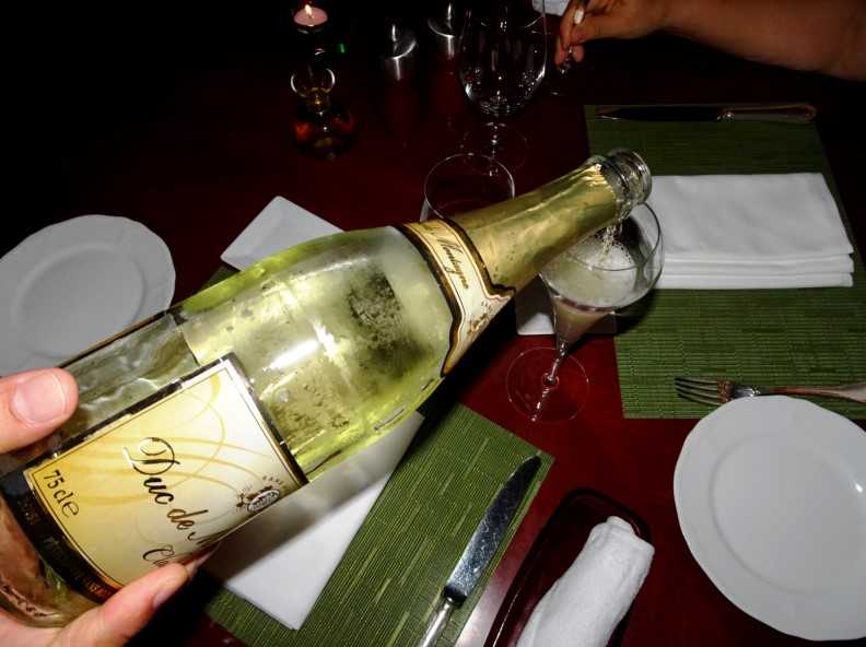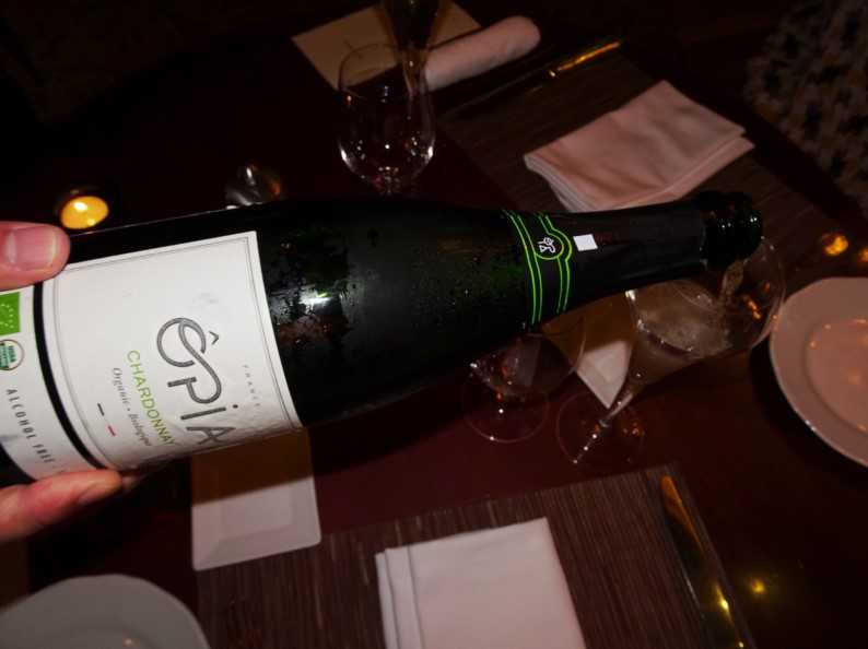 夕方、ビストロへ向かいます。フロントでいつものマネージャーさんが「お帰りなさいませ、XX様」とごあいさつ、いつもの席?「中央の大きな壺」の前にご案内です。会員特典のお飲み物は・・・先月に続き、今月も緊急事態宣言の関係でアルコールはNG、ノンアルコールのスパークリングワインを注文です。飲み物が運ばれてくると、ワイングラスがこれまでと違います。グラスは、先月と同じ、リムがすぼまったチューリップ型です。これもフルートグラスの一種で、底に、あの孔の仕掛けがあるのでしょう、ボウルの底からきれいな泡が次々と湧き出てきます。次々と美味しい料理が運ばれ、パンも追加し、いつもの様に、満腹、満足です。【今日のLifeHack:良いことの五つは真似しやすく、悪いことの一つはなかなかやめられない 島津義久】<緊急事態宣言の関係でノンアルコールのスパークリングワイン>