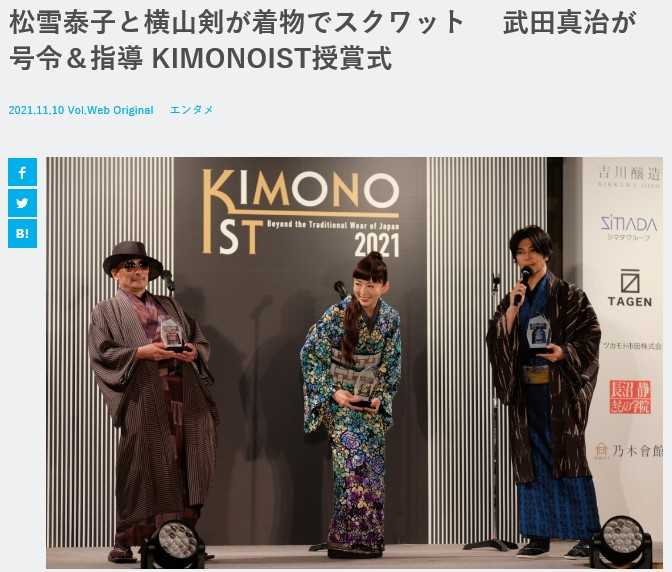 数日前、「第1回KIMONOIST(キモノイスト)授賞式」が開催され、武田真治さん、松雪泰子さん、冨永愛さん、TikTokerの景井ひなさん、俳優の早乙女太一さん、中川大志さん、建築家の永山祐子さん、メイクアップアーティスト・僧侶の西村宏堂さんに混じって、横山剣さんも美しい着物姿で受章されたニュースが流れました。未来のキモノの発信者、新しく進化するこれからの“キモノ”を着てほしい人に贈られるアワード『キモノイスト』。その中で、武田真治さんが、「着物を着てから時間が経っているのでパンプアップしたいと思う。同時に受賞した横山さん、松雪さんと共に3回ほどスクワットをしたいと思う」と呼びかけ、二人に強制スクワットをさせ、「予定にないことをしております!」と笑わせながら、太ももに刺激を与え「進化した着物は着崩れません!」と高らかに宣言していた、ようです。横山剣さん、ダンディです。ラリー会場の関係者エリアに入る許可を得て、横山剣さんとお話させて貰ったのを思い出します。・・・・・・・・・・・・・・・・・・・・・・・・・・・・・・・・・・・・・・・・<■武田真治、松雪泰子と横山剣にスクワット指南 筋トレで着物姿を美しく!>11/9(火) 17:30 ENCOUNT配信 未来のキモノを発信する人を選ぶ「第1回KIMONOIST(キモノイスト)授賞式」が9日、東京・白金台の八芳園で行われ、俳優の武田真治、モデルの冨永愛、女優の松雪泰子ら9人が受賞した。 ミュージシャンの横山剣、松雪と賞を受け取った武田は「第2回のジュノン・スーパーボーイ・コンテストでグランプリを受賞したが、今回は第1回のキモノイストをいただくことができた」と喜び。着物姿を美しく見せるための筋肉トレとして、横山、松雪に正しいスクワットを教授。一緒にスクワット3回を披露し、その場を盛り上げた。 着付けができる冨永は「10代の頃に海外に出たときに、同じ世代の若者が自分の国の政治、文化について、とても詳しく話していた。日本はどうなの? って聞かれたのをきっかけに、日本の文化を学ばなきゃと思った。まず着付けを習って、自分で着られるようになりたいなと思いました。でも、今日は着させていただきましたが」と笑い。 早乙女太一は「4歳から大衆演劇の初舞台を踏んで、自然と着物に触れる環境にいたおかげで、今、こうしてここにいるんだと思います。これからも着物の魅力を伝えたい」。中川大志は「最初にお話を聞いたときは本当に僕でいいんですかっていう感じでした。思いもよらないお話だったんですけども、本当に光栄に思います。かっこいい着物を着させていただいた。値段を聞かない方がいいよと言われた」と笑みを浮かべた。 ほかには、タレント、TikTokerの景井ひな、建築家の永山祐子、メイクアップアーティストで僧侶の西村宏堂が受賞した。ENCOUNT編集部・・・・・・・・・・・・・・・・・・・・・・・・・・・・・・・・・・・・・・・・【今日のLifeHack:他人と比較しても良い事はほとんどない ダルビッシュ有】<「第1回KIMONOIST(キモノイスト)授賞式」で横山剣さん、松雪泰子さん、武田真治さん><「グー!」><「パー!」><チョキ!>