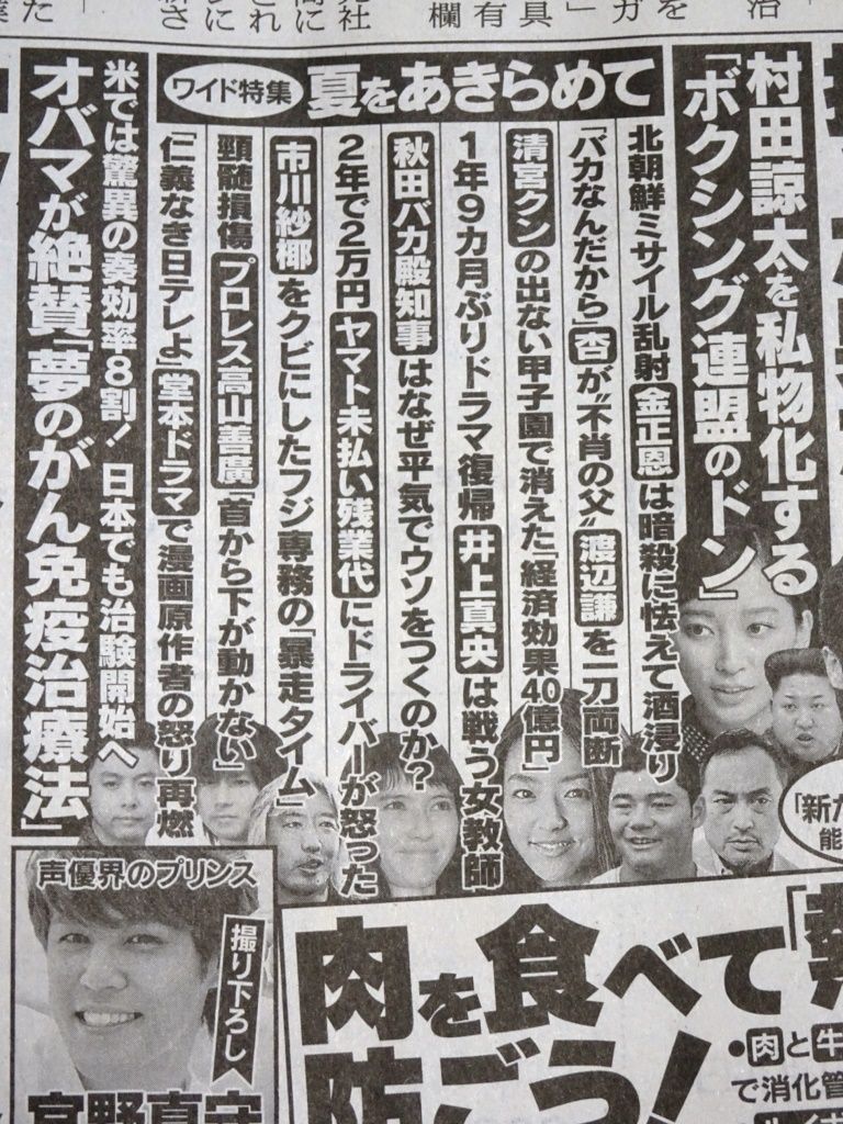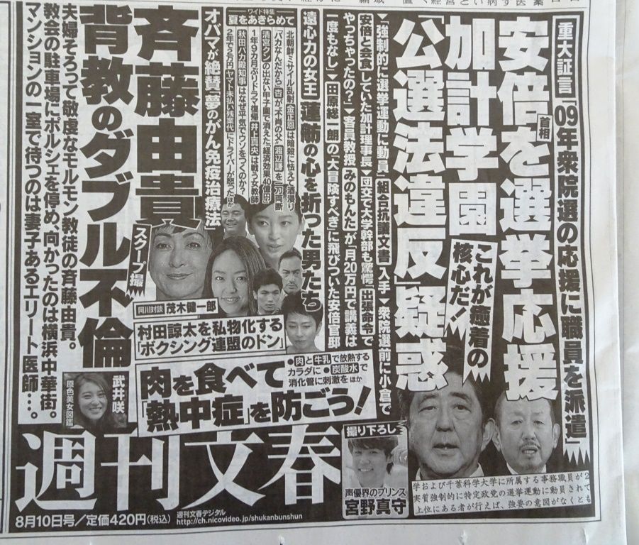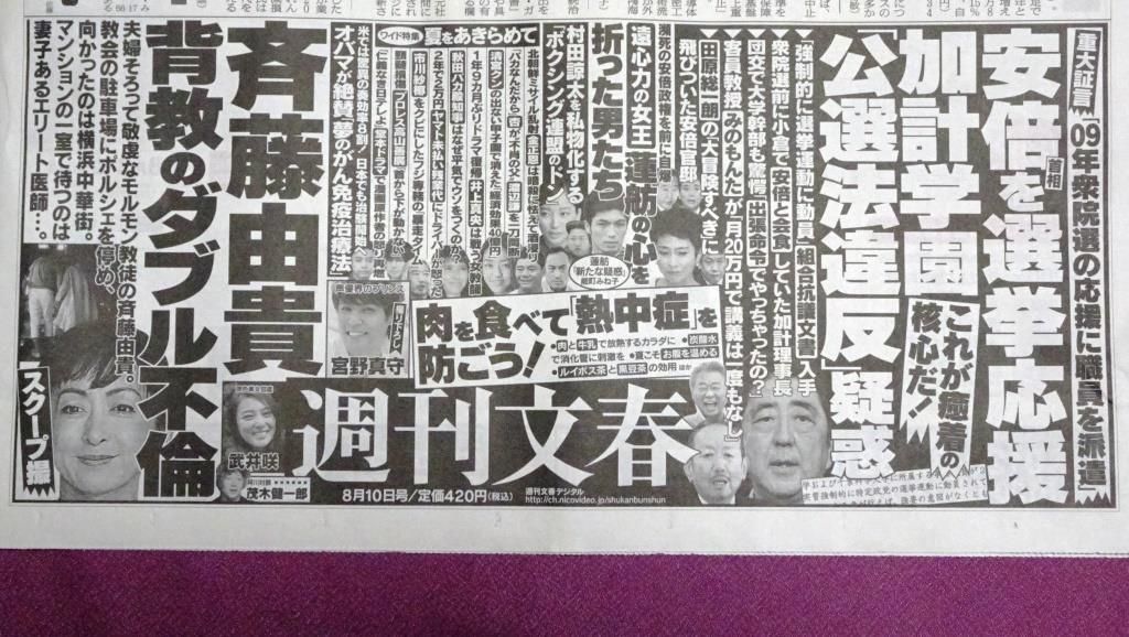 新聞に、8月10日号「週刊文春」の広告が載っていて、そこに話題の斎藤由貴ではなく・・・