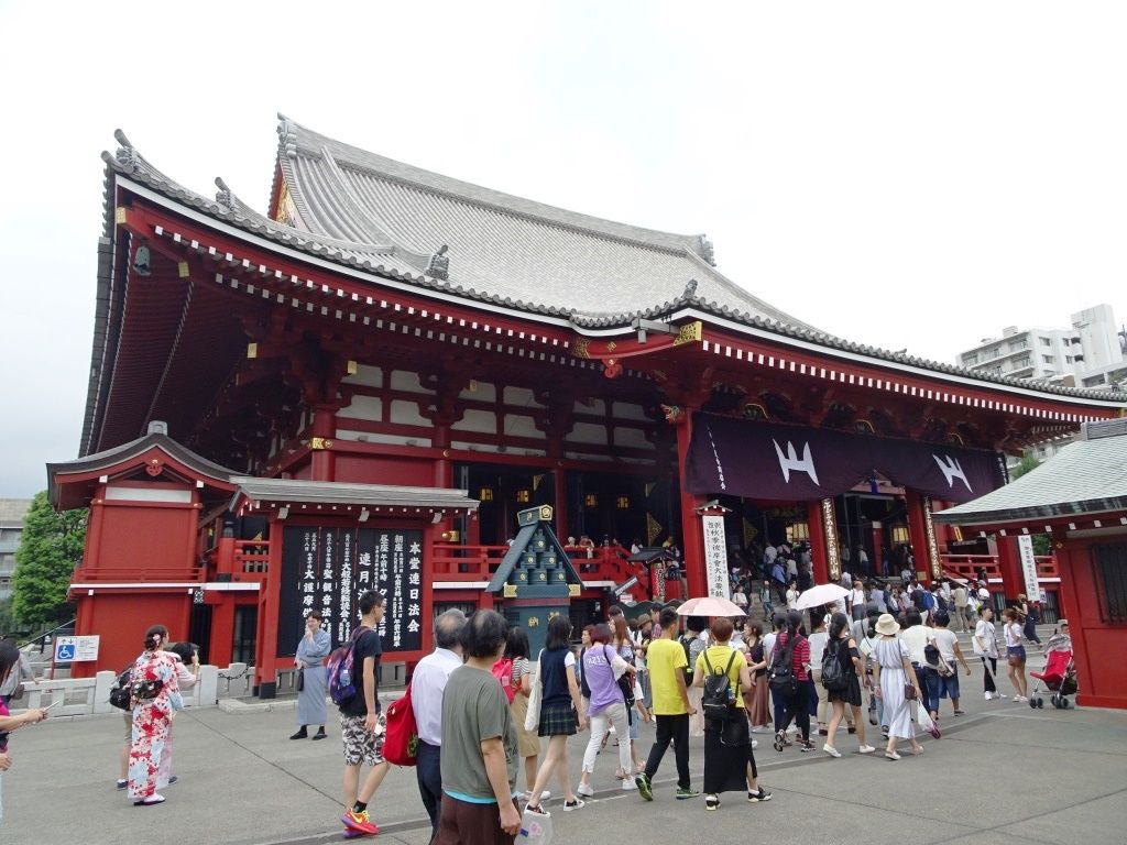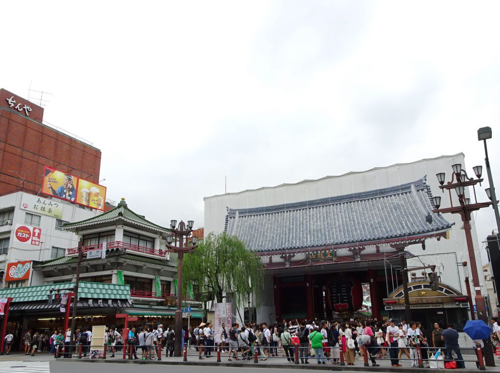 東京のシンボルの一つがここ浅草寺の雷門ですが、この日はメンテ中で、雷門が描かれた覆いを被っていました。