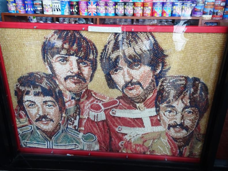 アルバート・ドック内のお菓子屋さんにジェリービーンズだけで作られたビートルズの絵が飾ってあり、気なりました。