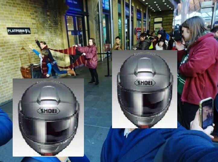 隣のハリーポッターショップのスタッフがマフラーや杖を貸してくれ、一人の係りの人がマフラーをたなびかせるように、ヒラァ~と離してくれ、もう一人の係の人が撮影してくれます。この大サービスにも驚きです。