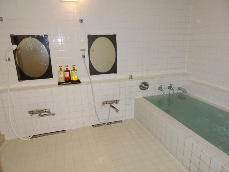 大浴場ではありませんが、数人なら楽に入れる余裕の広さで、湯船のお湯は出しっ放しになっていて、循環のようです。