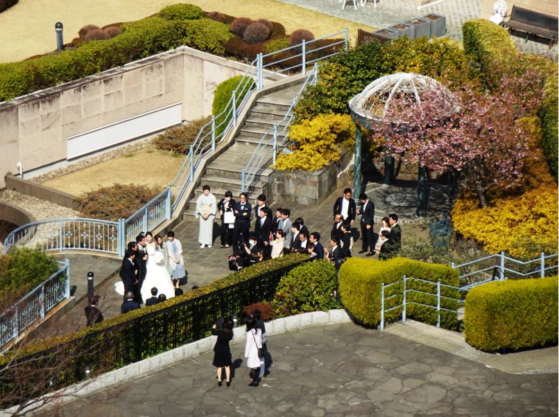 <庭園には、新郎新婦の姿も・・・>