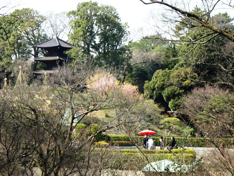 庭園には、桜がちらほら、開花時期が早まりそうで、来月訪れた頃は満開?かと・・・。