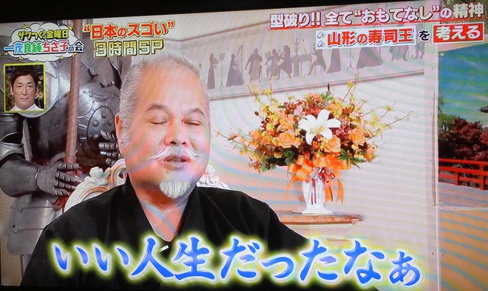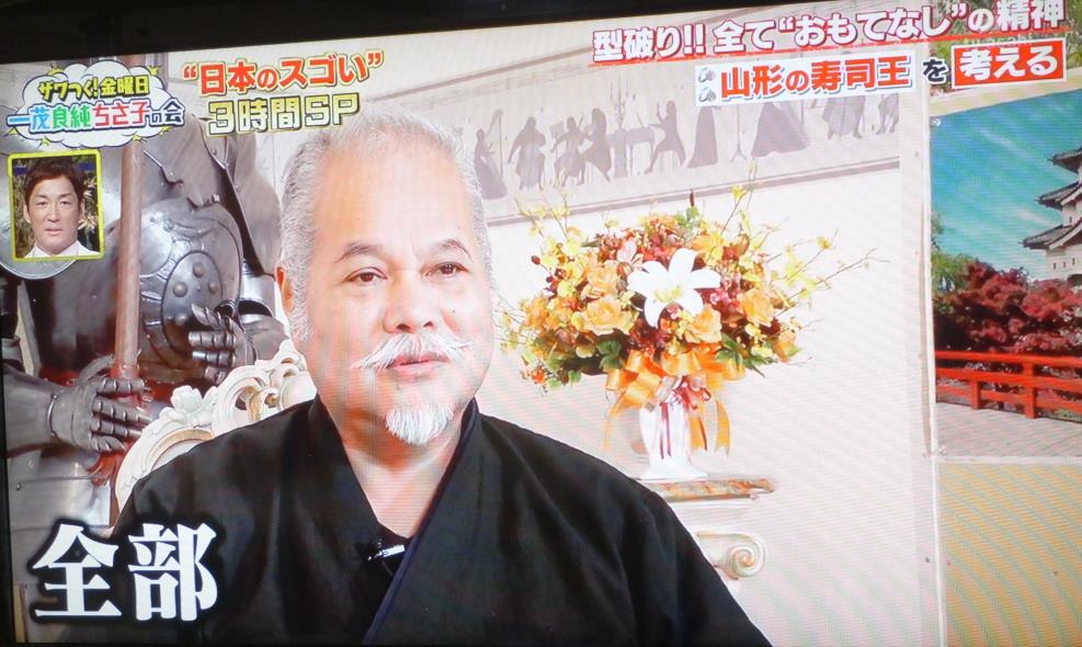 何気なくテレビを点けると、将棋の駒で有名な山形県天童市、以前ここでお世話になった「男寿し」の岡田茂さんが映っているではありませんか・・・三越の元社長ではありません・・・。