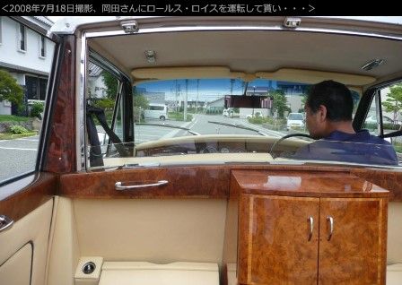 <2008年7月18日撮影、岡田さんの運転でロールス・ロイスの後席で王様気分>