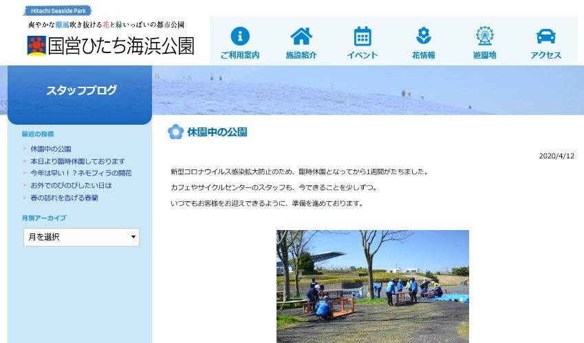 テレビを見ていると、「COVID-19」の為、この時季、ネモフィラで有名な「国営ひたち海浜公園」閉園とのニュースと、WEBで園内の様子が見られるサービスを始めたとの案内が流れました。