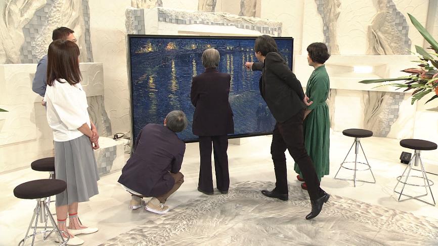 8K画像で近くから見ると、盛り上がった筆の跡、質感がよく見える、と。