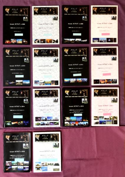 ・p1:表紙はその年の芸術的な傑作?画像を選んで構成。・p2~5:左が偶数頁、右が奇数頁で、目次は3ヶ月分を1頁に計4頁に纏め、脚下に表紙と裏表紙に載せた写真の解説を記入。・p6~:本文は左頁から開始し右頁で終わる様に、1か月分の頁数は偶数に纏めます。(この原稿の増減調整が大変で、時間を要します) ・最後(左頁開始・右頁で終了):その年お会いした有名人の写真。・プロフィール(奇数頁):自己紹介、毎年1冊ずつ増えるブログ本を含む著書など。