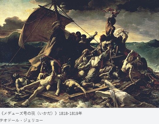 テオドール・ジェリコー「メデューズ号の筏」(1818-1819年)は、1816年に軍艦船が座礁するという実際の事故をもとに描かれています。