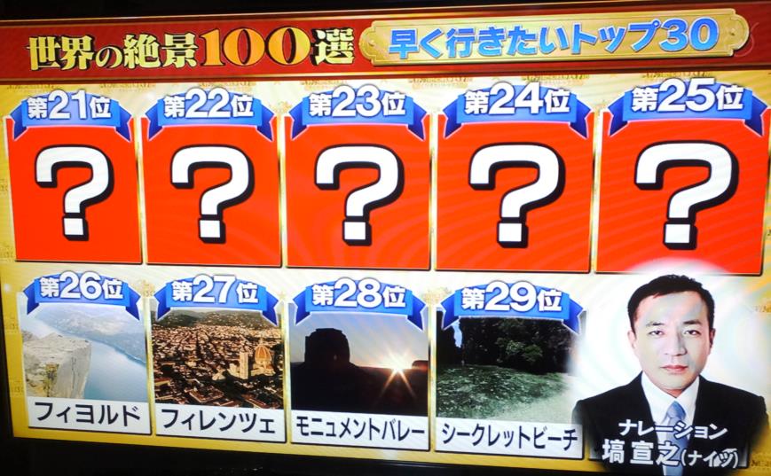 先週、フジテレビ『~おウチで世界一周~世界の絶景100選 早く行きたいトップ30』が放送されました。