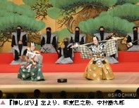 幕が開くと、大名役の扇雀が出てきて、次郎冠者と太郎冠者を懲らしめる算段を語ります。
