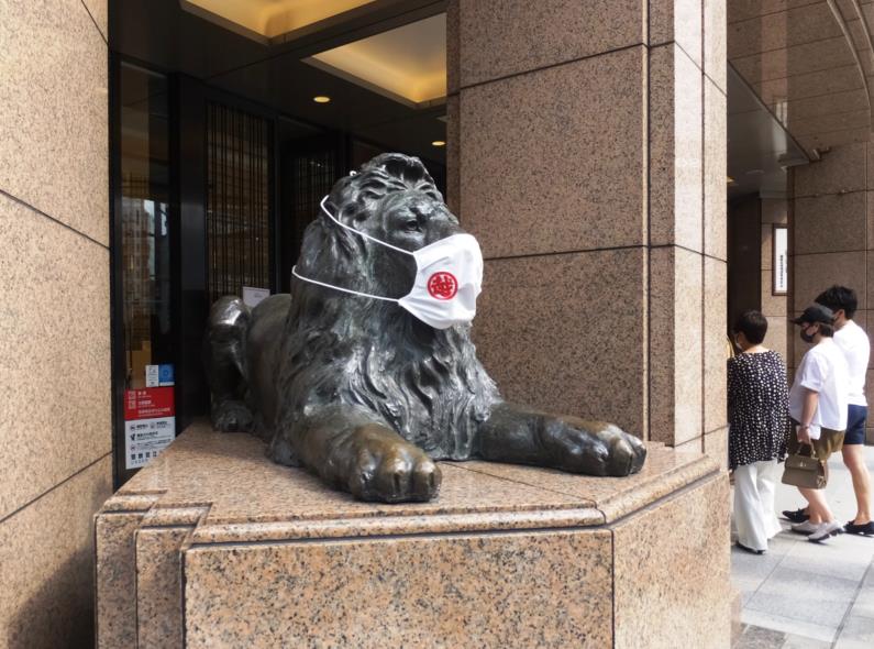 そうそう、久々の銀座、三越前に鎮座するライオンのマスク姿が気になりました。(笑)