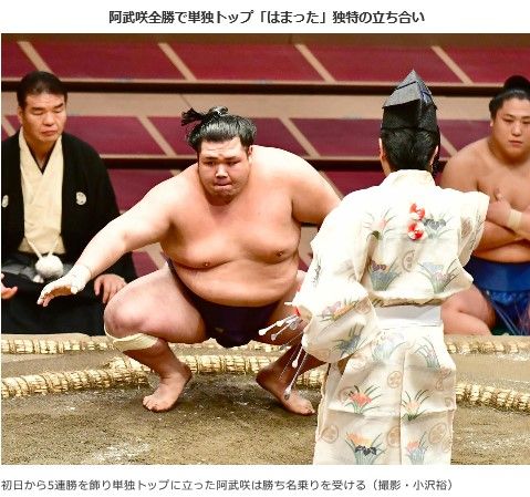 大相撲秋場所5日目、阿武咲関一人が5連勝のニュースが流れました。