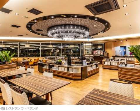 館内には、大浴殿・露天風呂、最上階展望プール(ネスカフェプール)、フィットネス、カフェ、コンビニ、2つの直営レストランを有しており、4階のレストラン「ラ・ベランダ」ではリゾート色あふれる60種類以上の充実した朝食ビュッフェを提供する。