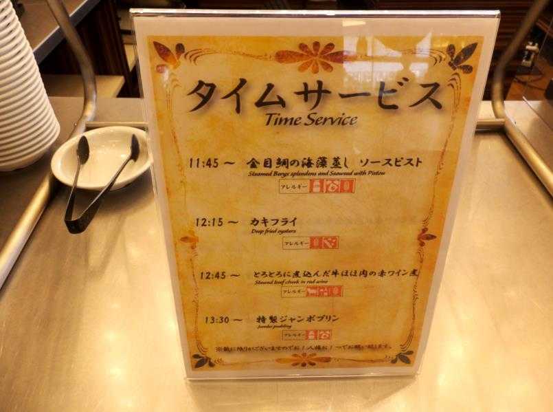 真新しいのは、「ちゃんこ鍋」「深川めし」、そして4回の「タイム・サービス」は店内放送があり楽しく食べられます。