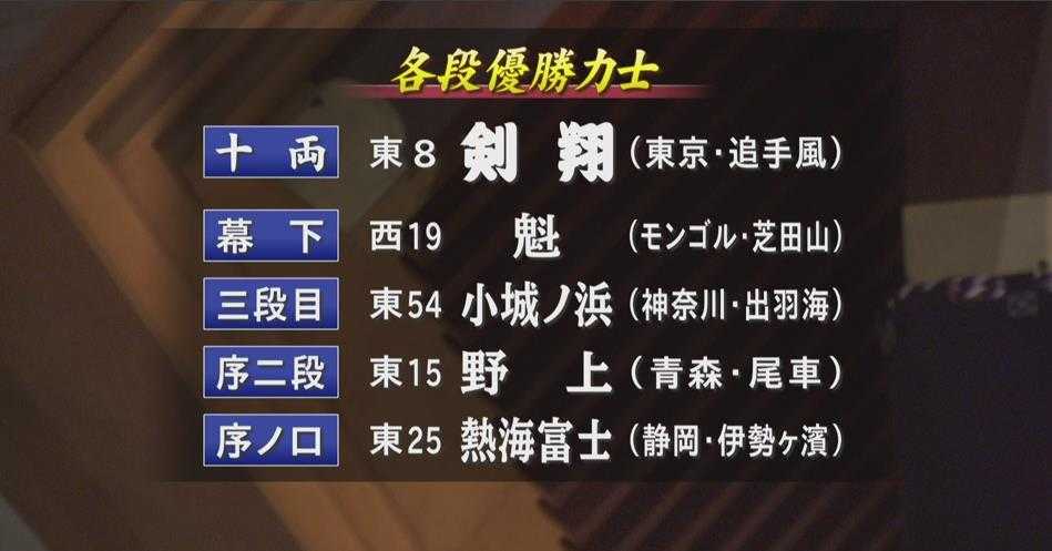 終了後、優勝決定戦があり、各表彰式で、十両は、東十両八枚目剣翔(つるぎしょう)が優勝です。