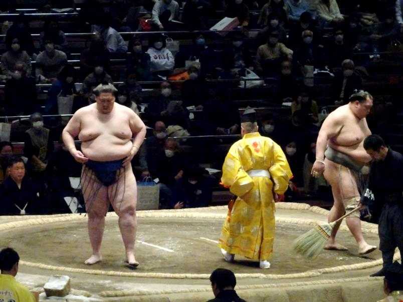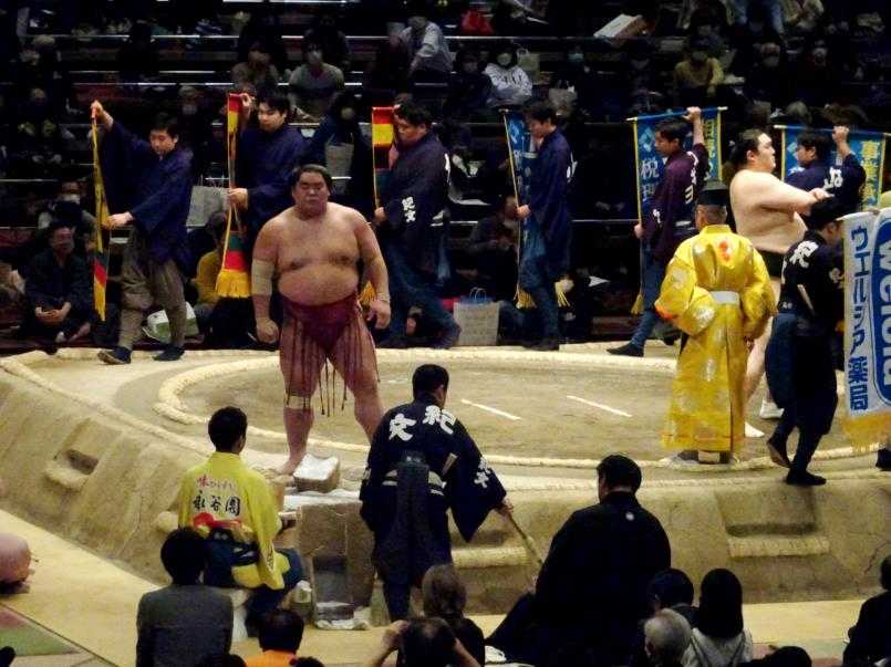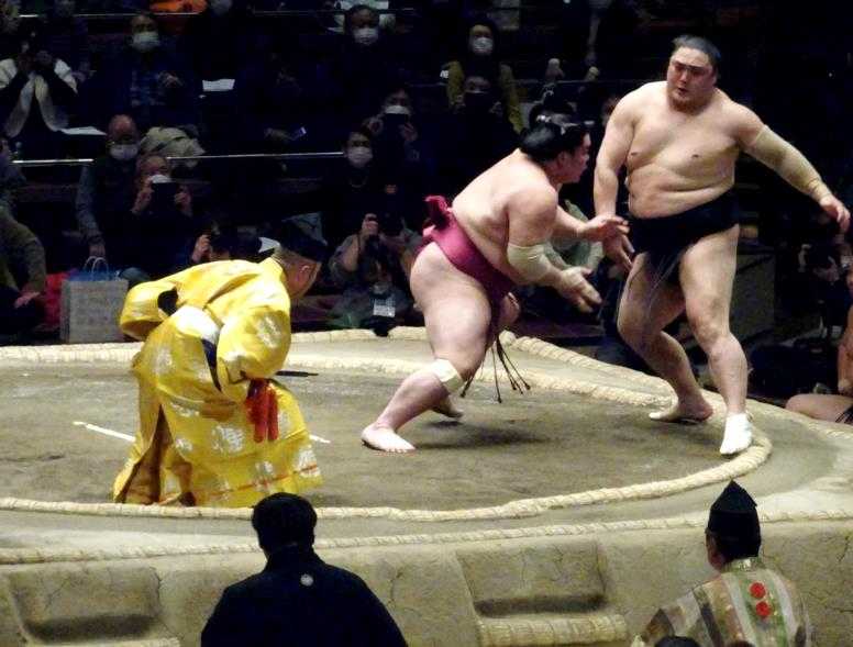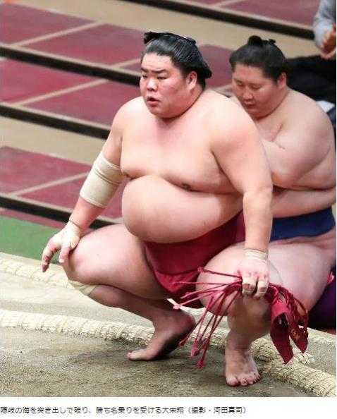 大栄翔関が突き出しで、隠岐の海関を破りました。