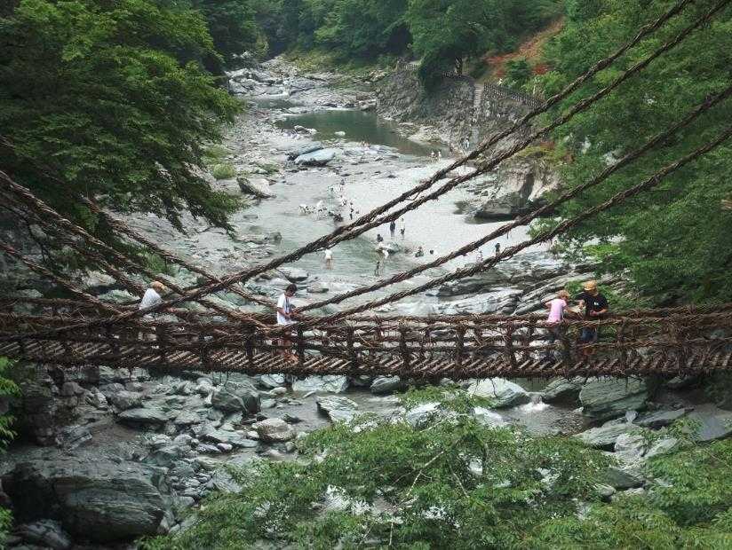 徳島県三好市西祖谷山村善徳にあるサルナシ(しらくちかずら)などの葛類を使って架けられた原始的な吊橋です。