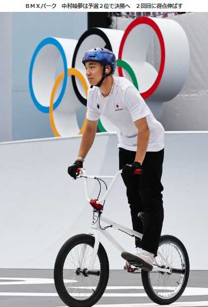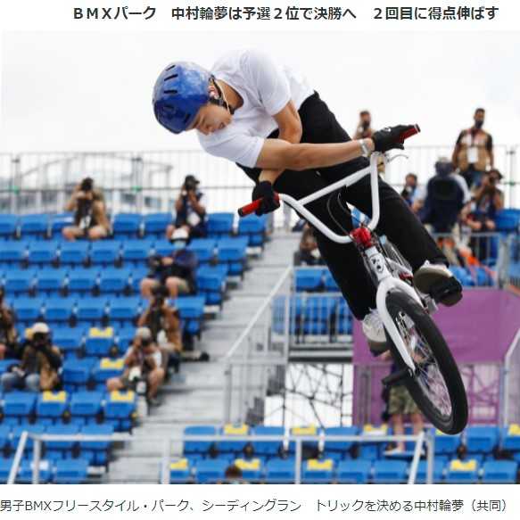 <■BMXフリースタイル・パーク男子の中村輪夢は全体2位で決勝へ 初代王者へ好発進>2021年7月31日スポーツ報知