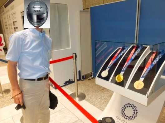 <メダルと一緒に撮影がOK、2019年7月28日に都庁で>