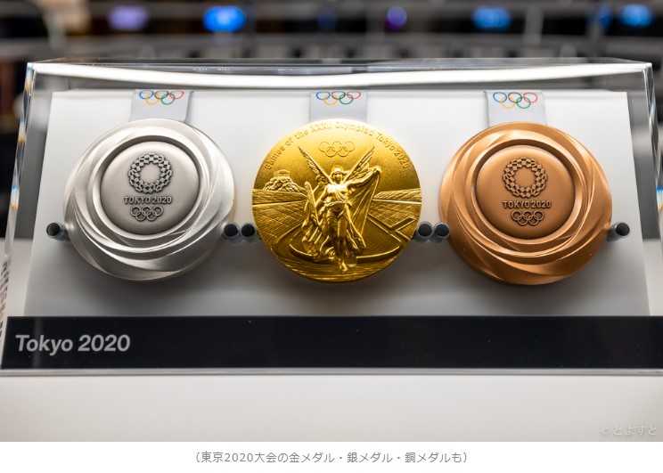 <東京オリンピックの金・銀・銅メダル、(裏面・表面・裏面)>